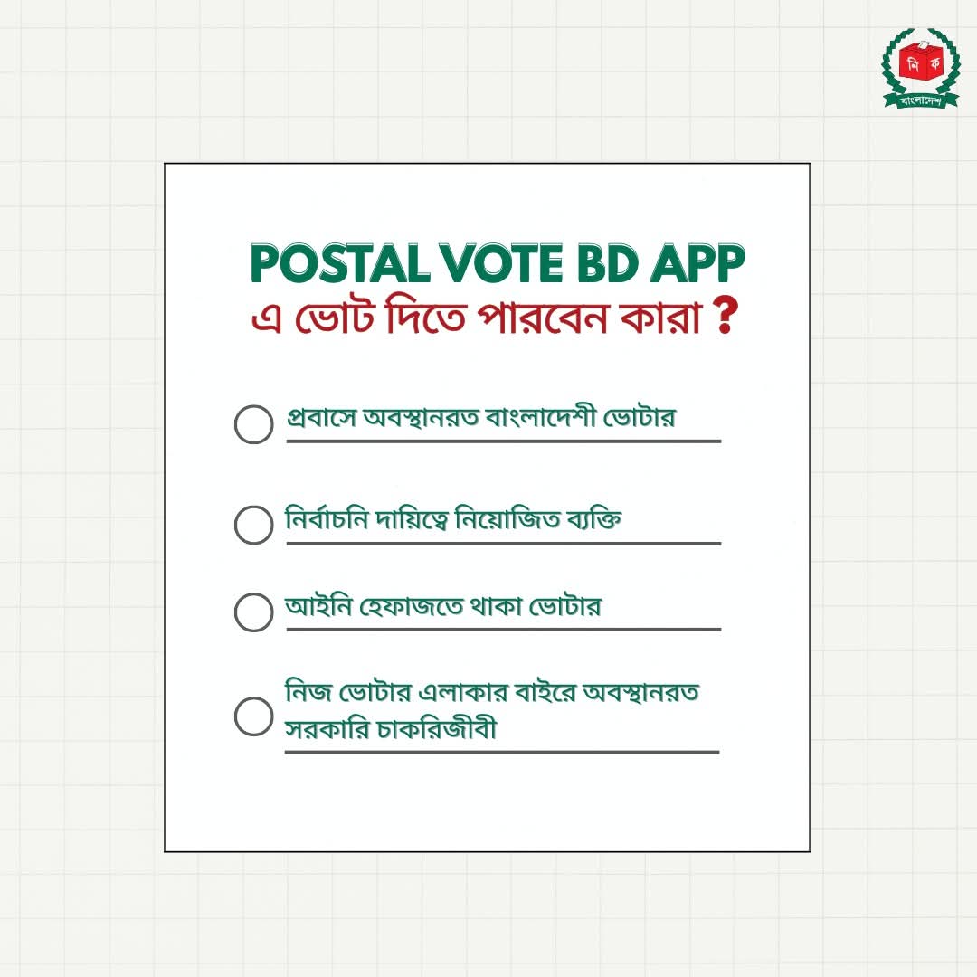 দেশের বাইরে থেকে ভোট দিতে Postal Vote BD অ্যাপটি ডাউনলোড করুন!